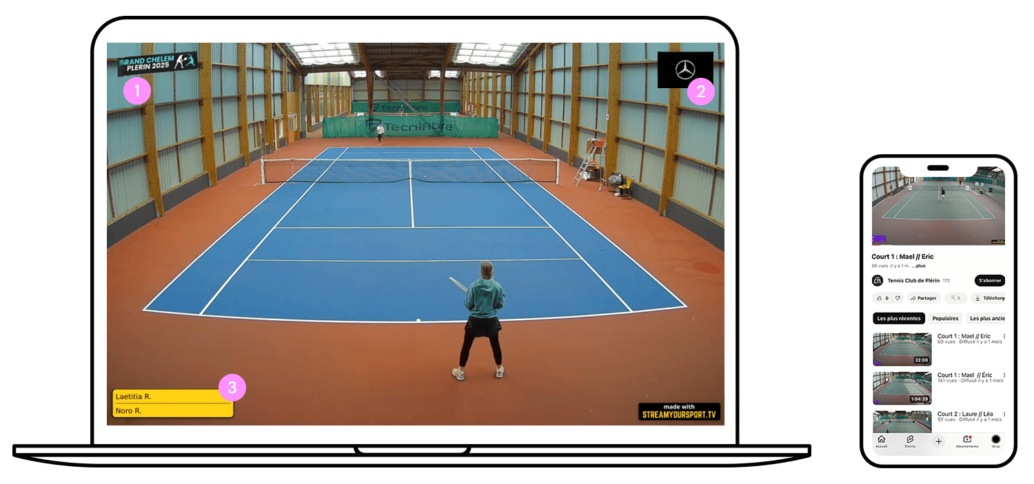 Notre application est conçue pour permettre l’affichage de logos sponsors sur l’écran. Ils s’affichent discrètement pour ne pas gêner le visionnage.